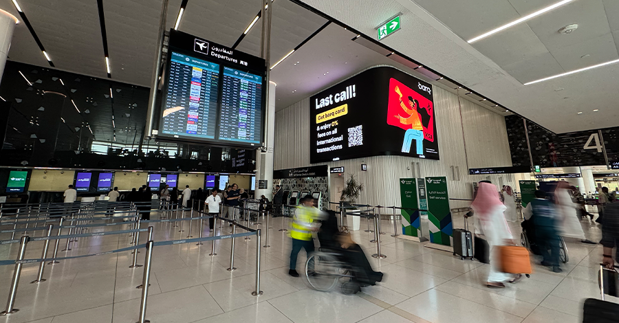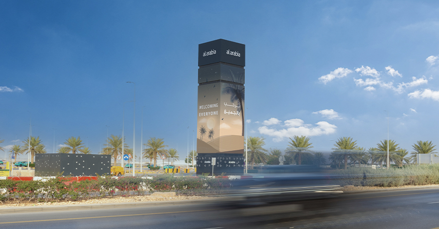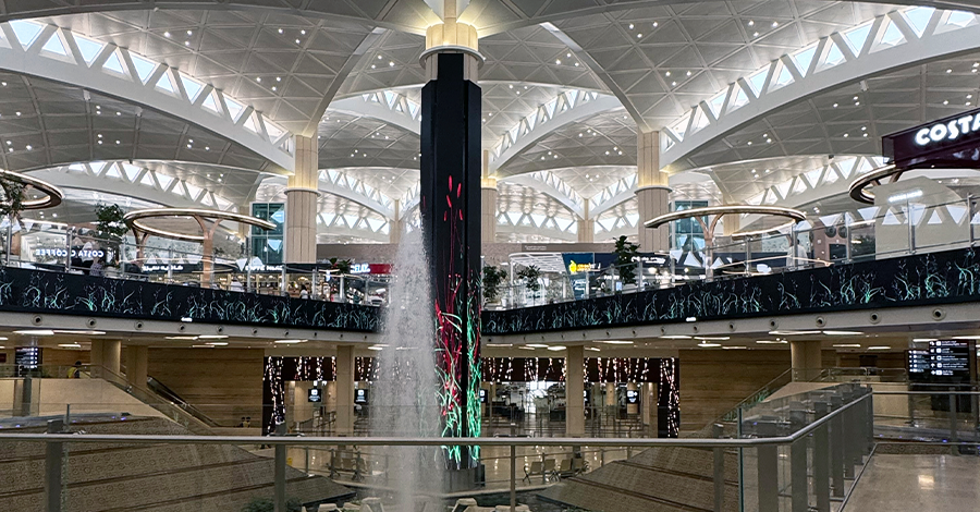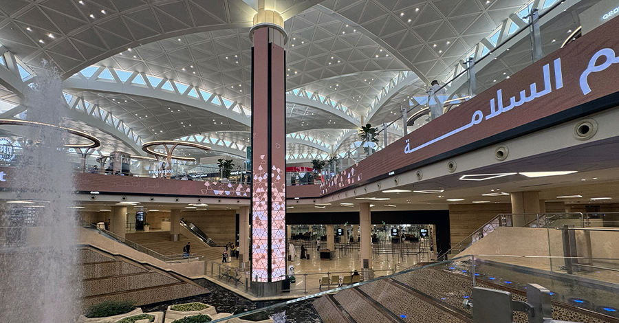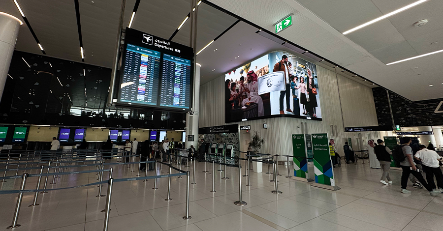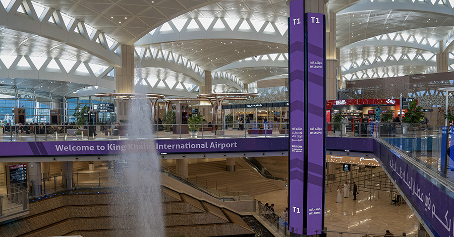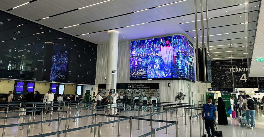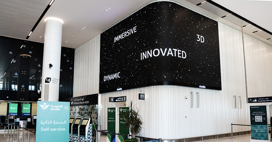 مجموعة طويق ”نخبة مطار الملك خالد الدولي“، شاشات أيقونية مزودة بتقنيات مبتكرة، مستوحاة من سلسلة جبال طويق الشامخة، لتجربة إعلانية متكاملة للعلامة التجارية والمسافرين.